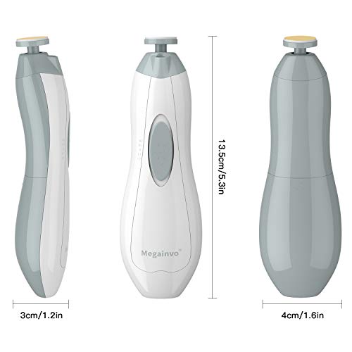 【10 in 1 nail care kit FOR BABY】: Our Megainvo baby nail file has 10 grinding heads. 3 colored sandpapers with 3 textures are designed for different stages of babies’ growth and various needs. This baby nail file electric comes with 2 orange grinding heads (for 0-3 months baby), 4 fluorescent green grinding heads (for 4-11 months baby), 4 mint green grinding heads (for 12 months and up baby).