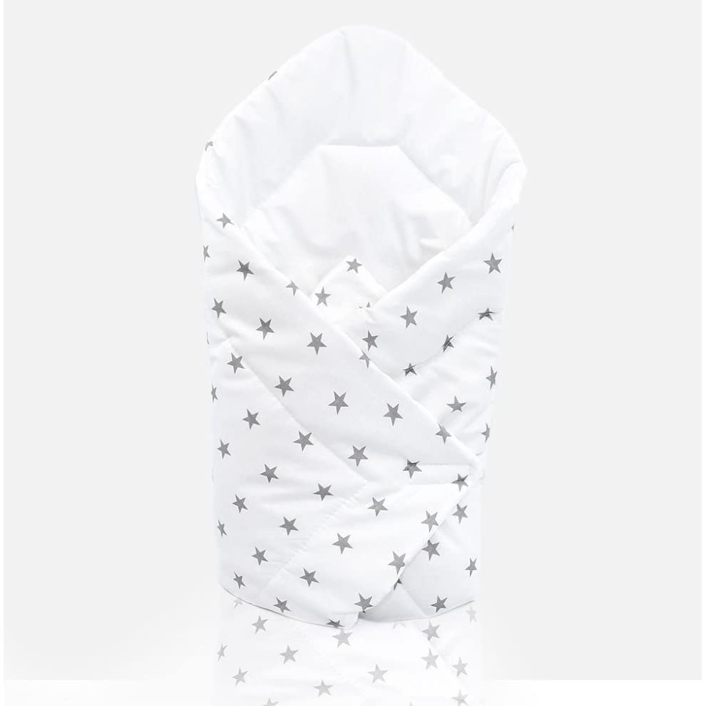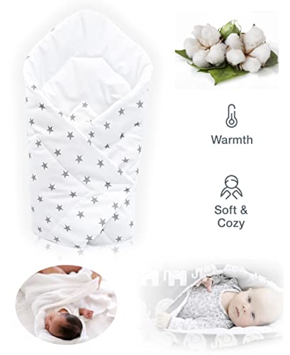 Baby Swaddle Wrap Infant Bedding Blanket/Cotton Newborn Duvet Quilt Envelope 0 to 3 Months (Grey stars on white background)
