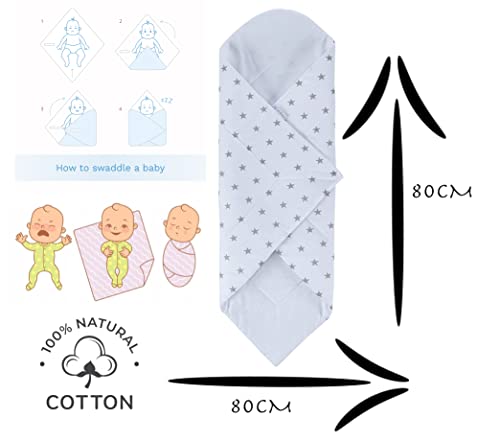 GENEROUS UNFOLDED SIZE: With a spacious unfolded size of 80×80 cm, our swaddle blanket offers ample coverage to comfortably accommodate your growing baby. It’s the perfect essential for newborns, providing a cosy sleeping environment and doubling as a baby blanket or wrap for outings. It’s a must-have for every parent, providing comfort, convenience, and style.