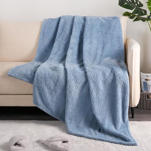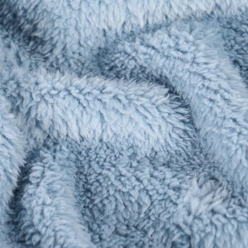 Teddy Fleece Bed Throw: Super soft and thick blanket throw made from teddy bear fleece fabric. Blue blanket for winter/summer that will keep you warm and cosy as throw for bed, couch cover or throw blanket on sofa.