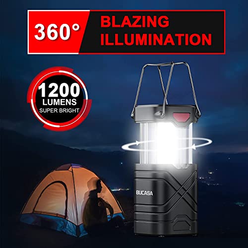 BUCASA Solar Camping Lights, 2 Pack Portable Rechargeable Camping Torch 2000 Lumen, Super Bright Collapsible Waterproof Camping Lantern for Outdoor Hiking Fishing Emergency