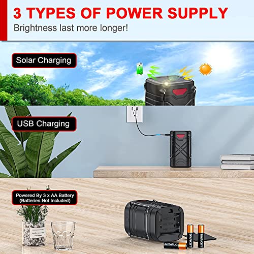 【3 Charging Options】Not only can this rechargeable torch be charged via a charging cable, but it can also be powered by 3*AA batteries (not included). When you have no power supply outdoors, you can keep the solar camping light in direct sunlight for charging, providing 1-2 hours of emergency lighting. Multiple charging options will bring more security and keep you away from the darkness.