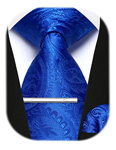 Enlision Mens Tie and Pocket Square Set Paisley Plaid Ties for Men with Tie Clip Business Formal Wedding Neckties Handkerchief Tie Pin Gift Sets