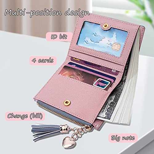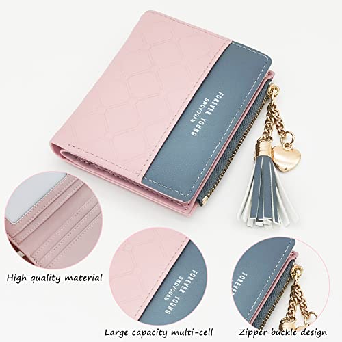 FuninCrea Leather Wallet, PU Small Purses for Women, Bifold Card Holder Small Purse with Zipper Coin Pocket, Multicard Women’s Wallets Coin Purse for Cash, Cion, Card, Bill (Pink)