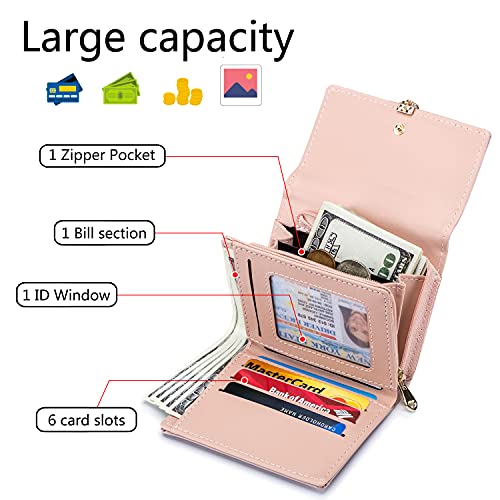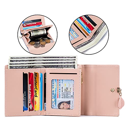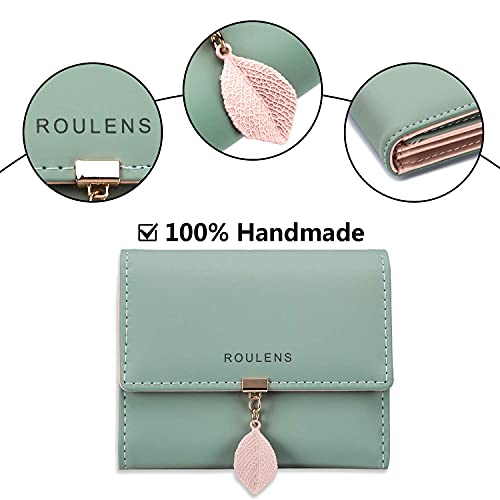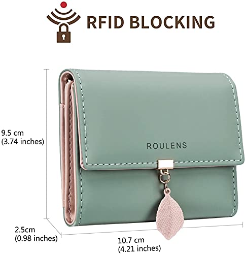 Roulens Ladies Purse, RFID Blocking PU Leather Wallet for Women Leaf Pendant Zipper Coin Purse with Multiple Card Slots and Roomy Compartment