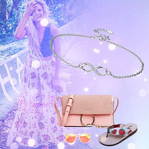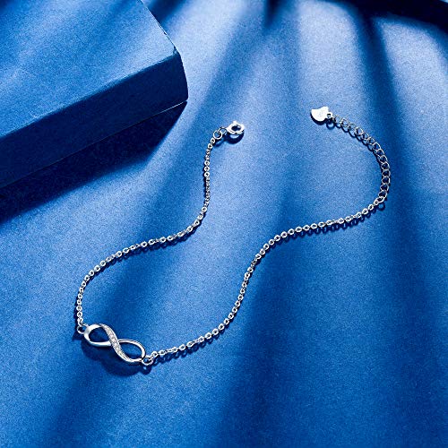 Lydreewam Infinity Ankle Bracelet for Women 925 Sterling Silver Summer Barefoot Beach Anklet with Zirconia, Adjustable 22+4cm