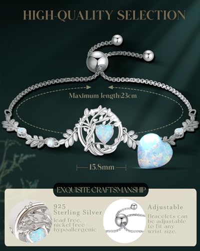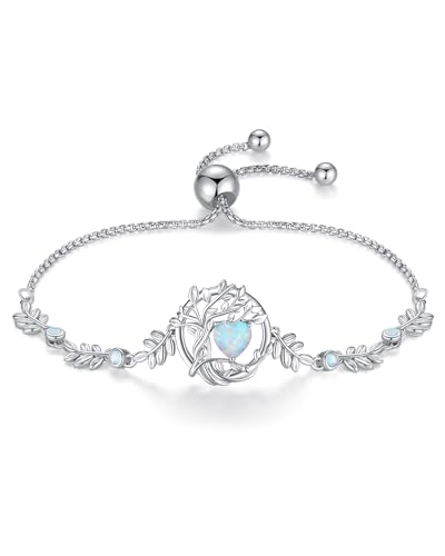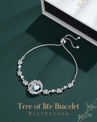 FANCIME Tree of life Birthstone Bracelet for Women Sterling Silver Tree Jewellery Birthstone Charm Bracelet Anniversary Birthday Christmas Gifts for Women Wife Girls Her