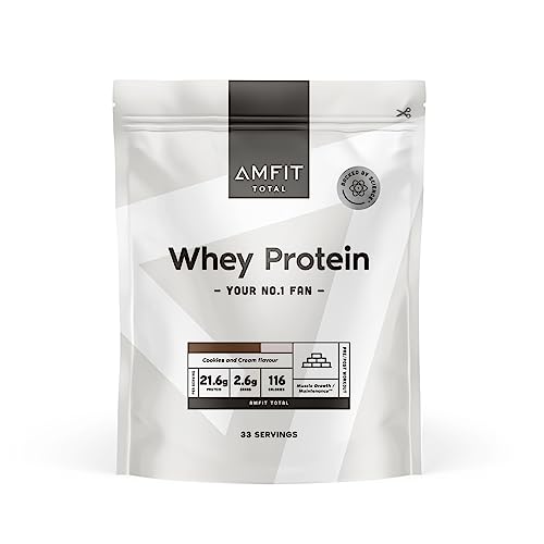 Amazon Brand – Amfit Nutrition Whey Protein Powder, Cookies & Cream New Flavour, 33 Servings, 1 kg (Pack of 1)