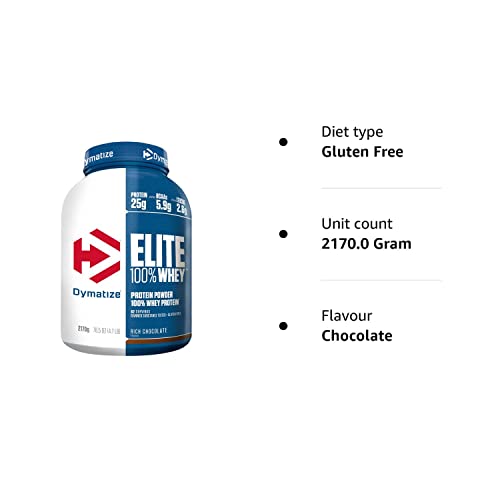 Dymatize Elite 100 Percent Whey Rich Chocolate 2170g – High Protein Low Sugar Powder + Whey Protein and BCAAs