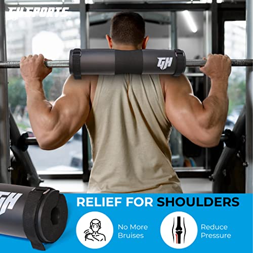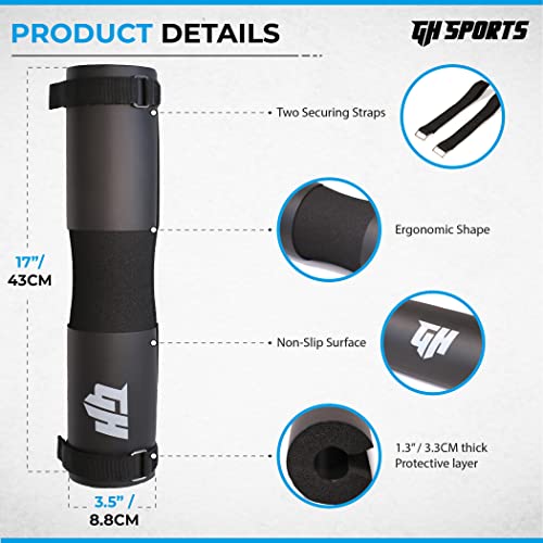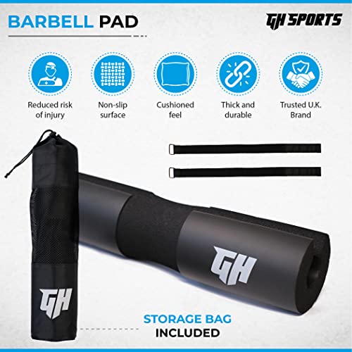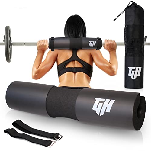 GH Sports Barbell Pad – Thick Foam Padding, Rubber Squat Pad with 2 Straps & Carry Bag – Neck, Back & Shoulder Support for Weightlifting, Hip Thrusts, Squats – Fits Olympic Barbell – Gym Accessories