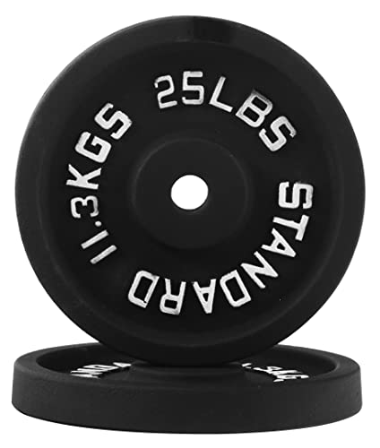 Made of solid cast iron with a 1-inch center hole fits any Standard bar with diameter 1” or less; Can be used with 1” dumbbell bars too