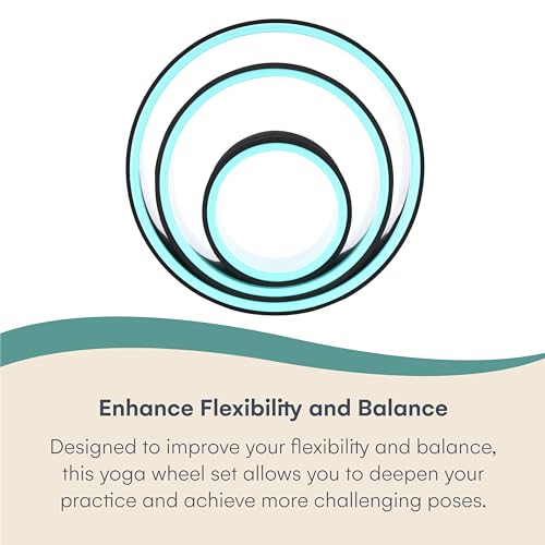 Versatile Design : Our set of 3 yoga wheels with elastic band is perfect for yoga, stretching, and gymnastics, providing a versatile tool for improving flexibility and balance.