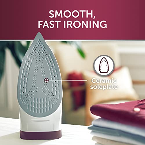 Lightweight steam iron for easy holding, with a ceramic soleplate for smooth, fast ironing and a precision tip to navigate around buttons and tricky corners