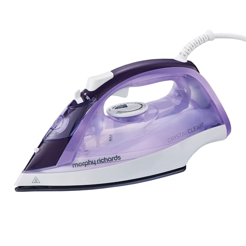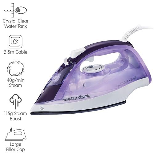 Morphy Richards Crystal Clear Steam Iron, Ceramic Non-stick Soleplate, 115g Steam Boost, 40g Steam Output, Anti Drip, Anti Scale, 350ml Water Tank, Self-Clean, 2.5m Cord, 2400W, Purple, 300301