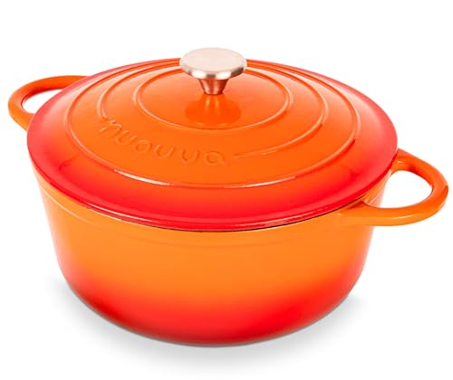 Cast Iron Dutch Oven with Lid – Non-Stick Ovenproof Enamelled Casserole Pot – Sturdy Dutch Oven Cookware – Orange, 6.4-Quart, 28cm – by Nuovva