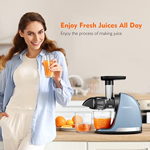 AMZCHEF Juicer Machines – Cold Press Slow Juicer -Masticating Juicer whole Fruit and Vegetable – Delicate Chew No Need to Filter – BPA Free Juice Extractor with 2 Cups and Brush – SlateBlue