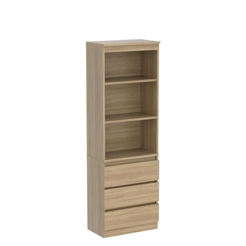 Tall bookcase with drawers: This freestanding bookcase not only has 3 drawers but also 3 open shelves. The open shelves are suitable for collecting books and the bookcase with drawers allows for good storage and organization.