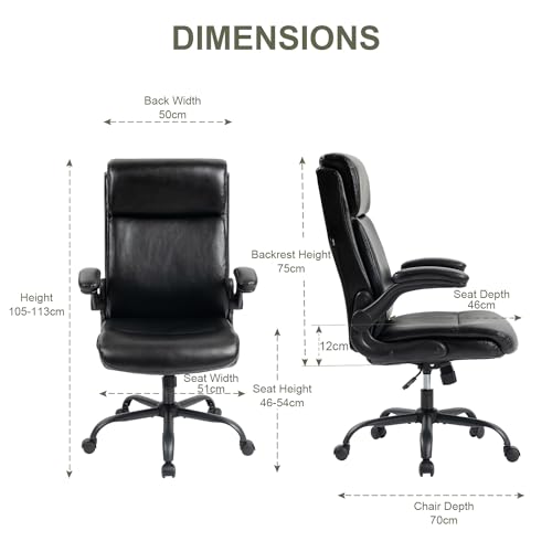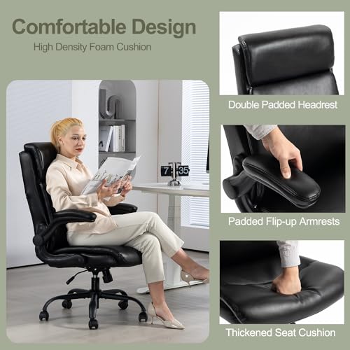 CASTLOVE Office Chair Computer Desk Chair Swivel Wide Executive Office Chair with Flip Up Armrest for Office Home PU Leather Black