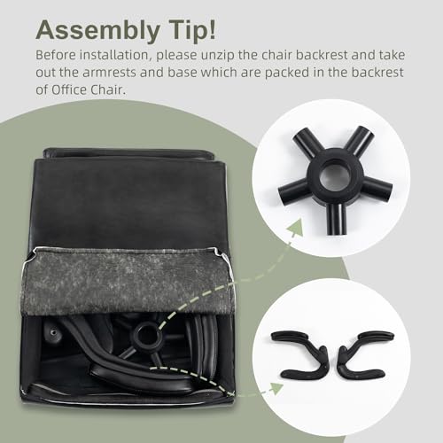 Easy to Assembly in 15 minutes: Components included (casters, base, arms, seat mechanism, hardware kit). NOTE: ARMS and BASE are packed in the back of Office Chair.
