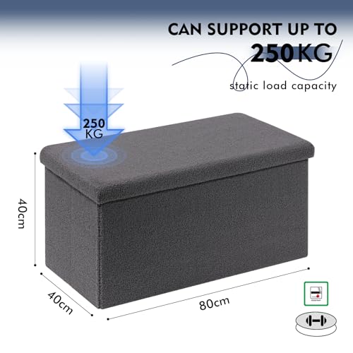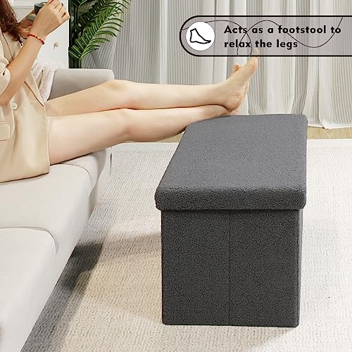 Bonlife Ottoman Bench,Large Toy Storage Box with Lid,Folding Footstool with Storage for Living Room,Hallway,Boucle Fabric,Grey,80x40x40cm