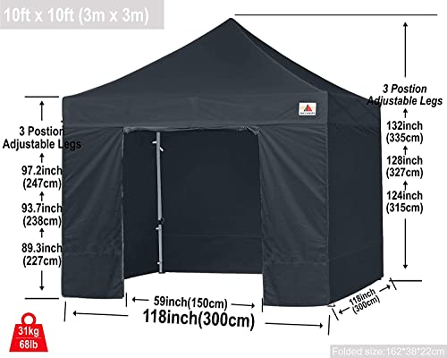 ABCCANOPY Pop Up Gazebo Canopy Commercial Tents Market stall with 4 Removable Sidewalls and Roller Bag Bonus 4 Weight Bags. (3x3M, Black)