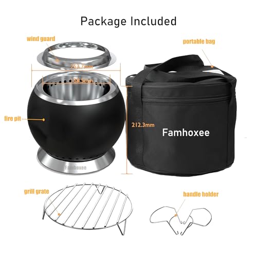 Famhoxee Fire Pit Tabletop For Outdoor Heating and BBQ, Lightweight with Travel Bag, Fueled by Wood Pellets, Stainless Steel SUS403 Grill Grid, Camping Patio Garden Used- Φ26*21cm, Black