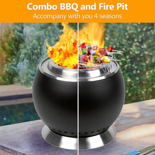 Dual Fuels Choice: This fire pit can use wood or pellets as burning fuels, start fire easy and 360° air flow smokeless design, bring warm for you soon.