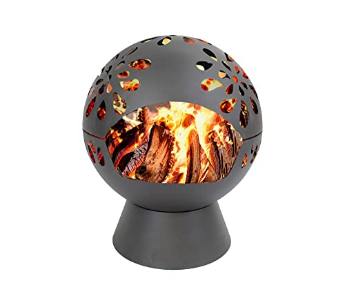 GardenCo Globe Fire Pit – Large 60cm Outdoor Round Firepit for Garden and Patio – Wood Burner Fire Basket – Weatherproof Cover (Black)