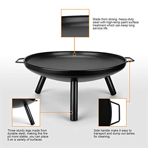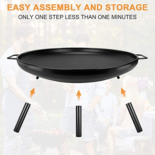 EASY ASSEMBLY — The garden fire pits no need tools and screws to install, simply attach the 3 removable legs less than 1 minute. The camping fire pit is very lightweight and convenient. With two side handles, you can take it anywhere in the backyard or while camping