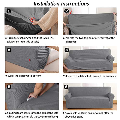 STRETCH & RICH: This premium sofa slip cover is crafted from Iuxurious high spandex plush knitted fabric with small check pattern, feature high stretchy and durability, warm, soft and confortable, ensuring fashionable and functional