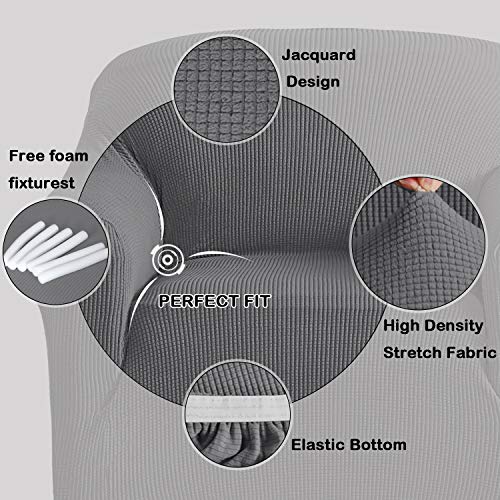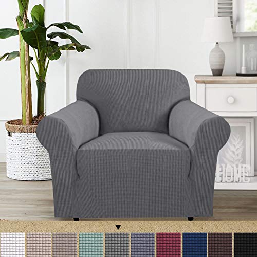 BellaHills Super Stretch Sofa Covers Couch Covers Sofa Slipcovers Furniture Protector for Sofas/Kids/Pets | Form Fitted Jacquard with Elastic Bottom, Thick Soft Non Slip (1 Seater, Charcoal Gray)