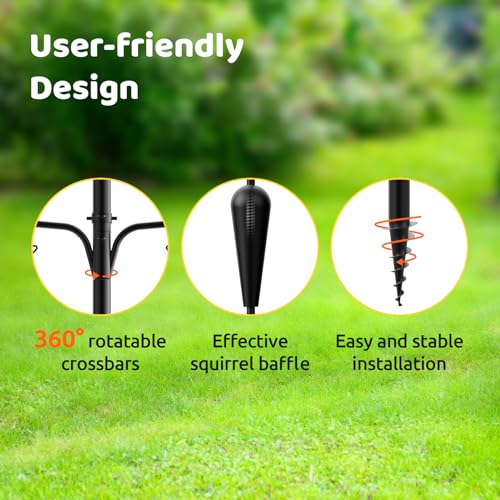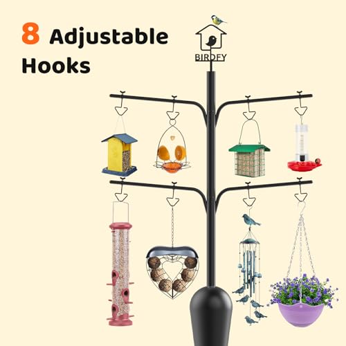 Birdfy Pole -Bird Feeders Hanging Station, Full-Metal Bird Feeding Station, Patented Squirrel-Proof Baffle, Bird Feeder Stand Heavy Duty Pole, 8 Adjustable Hangers, Rust-Resistant, Tools-Free Install