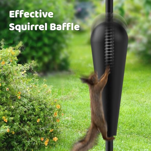 🐿⛔Patented Effective Squirrel-Proof Baffle👌 Birdfy Pole Bird Feeders Hanging Station features an innovative patented squirrel-proof baffle with a smooth surface and incredible elasticity. It swings up and down if a squirrel lands on it, effectively deterring squirrels, keeping them at bay from the bird feeders. Friendly tip, make sure to position it at least 10 ft away from objects like trees, walls, or anything squirrels can use as launchpads, to avoid aerial assaults