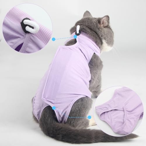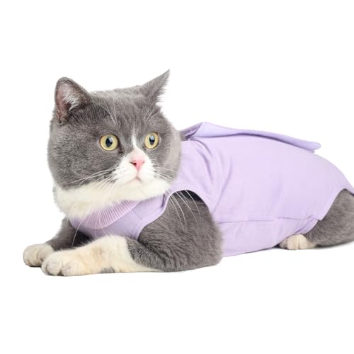 EASY JOY Recovery Suit Cat, Cat Body After Op, Postoperative Cat Clothing for Abdominal Wounds or Skin Diseases, E-Collar Alternative for Cats, Soft Home Indoor Pet Clothing (M,Purple)
