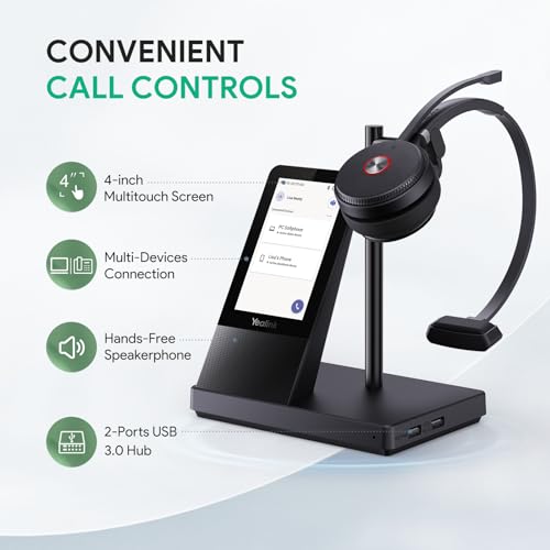 Yealink WH66 Wireless Headset with 4″ Screen, DECT & Bluetooth Connectivity, Certified for Teams, Zoom, Skype, 525ft Range, 13hr Call Time, Office Work Headset